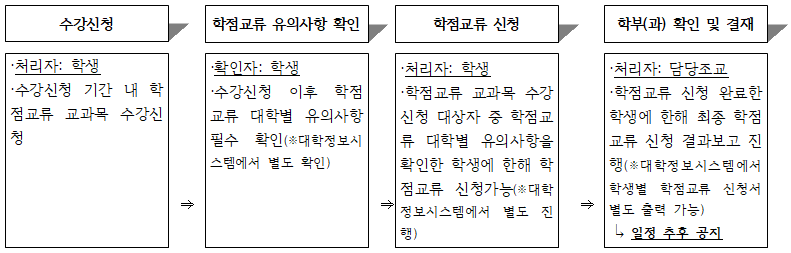 2) 학점교류 신청은 학점교류 교과목을 수강 신청한 학생에 한해 신청할 수 있습니다.